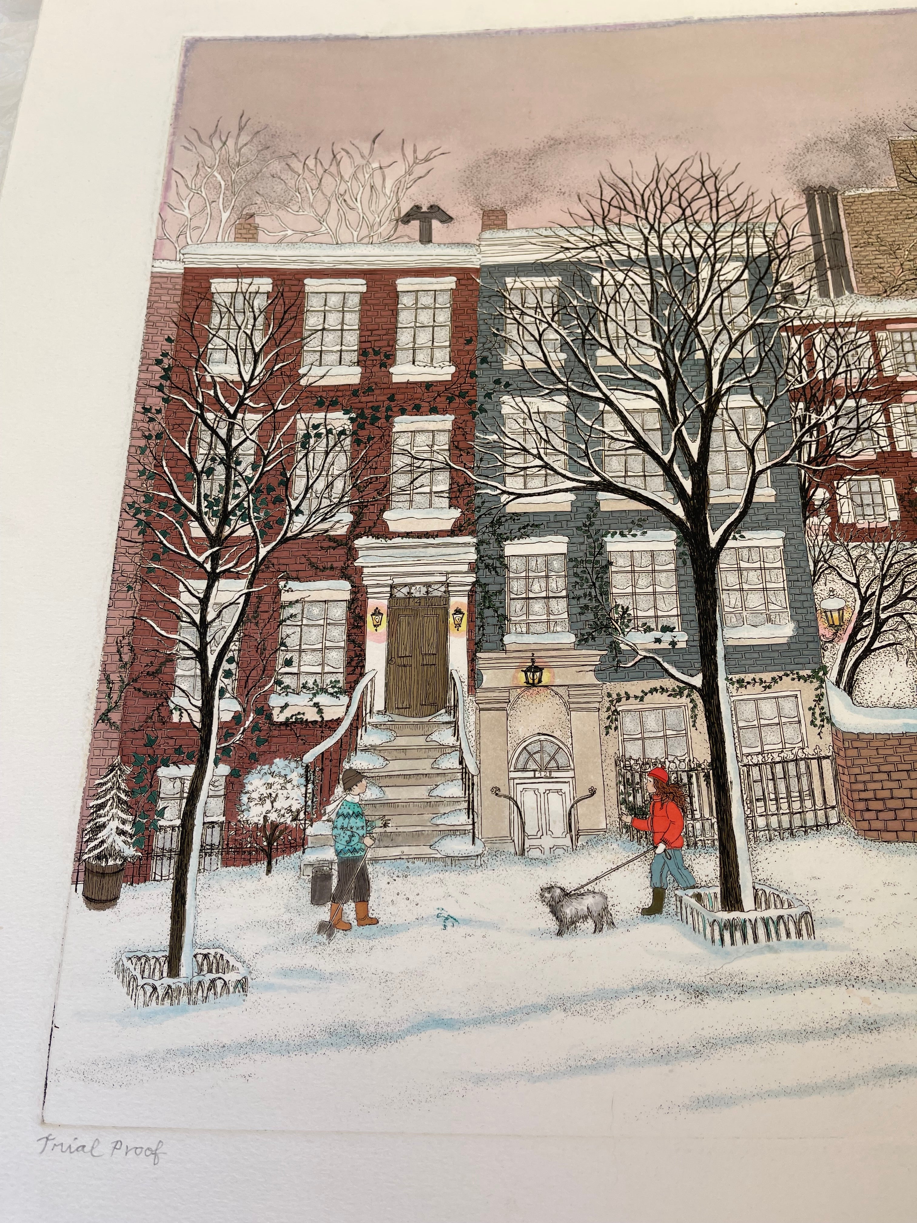 This is a beautiful etching of Greenwich Village, New York City. It is full of exquisite, whimsical details that make your heart sing!